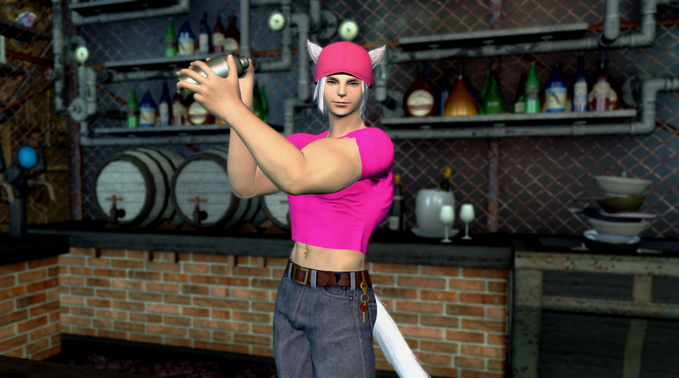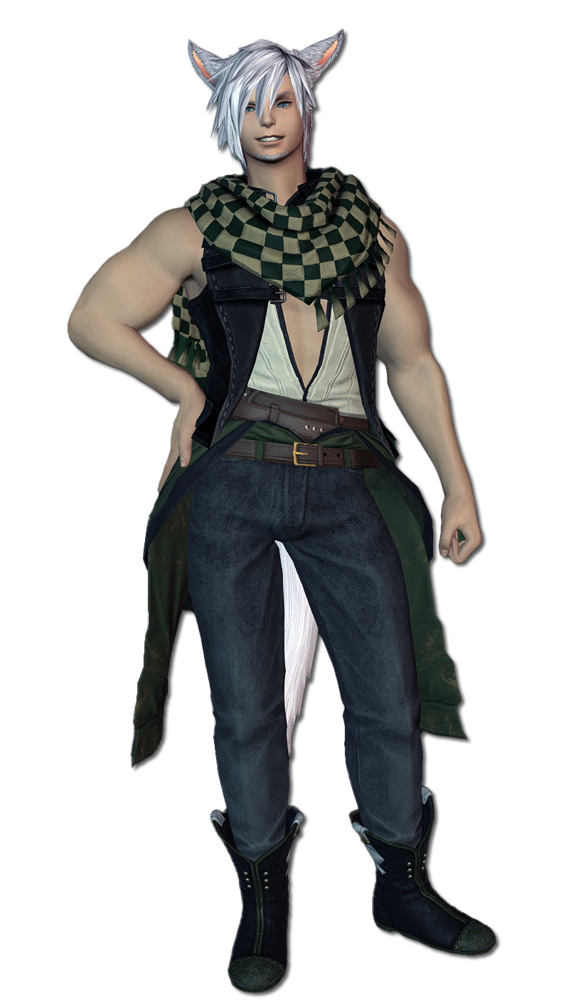 Though a reasonably skilled hunter growing up, R'kitchi Tia began to eschew his nomadic upbringing as a teenager when he grew more and more intimate with the ways of city life that encroached upon tribal lands. His curiosity eventually brought him to the gates of Ul'Dah where he managed to pick up odd jobs working for a Hyur merchant, Darwin Braddock.Before long, he found that he had a knack for negotiating on Darwin's behalf as a retainer, using his wit, charm, and disarming smile to get the best quality merchandise and prices amongst the markets of Eorzea for his employer. As word of his skills spread, he found his services in demand and began working for several merchants, earning a modest living which provided the types of comfort his nomadic lifestyle could never have offered him. In time, he moved away from using his conventional Miqo'te name and adopted the surname of his employer and mentor - Kit Braddock was born.He developed a taste for clothing spending so much time wandering through wares while on the clock and quickly began to amass a rather large and varied wardrobe. He also grew to love food, his palate ever expanding thanks to the wide variety of food to sample wherever his travels took him. When the workday was done, he and his fellow retainer friends would spend their hard earned gil partying the night away, dancing and enjoying the nightlife of the realm.Recently, Kit has taken a position working for Harry Oldman, brewmaster and owner of Steamworks Brewery in Shirogane, as a retainer, part-time helper around the bar, and apprentice brewer. Moving to Hingashi has been the highlight of Kit's young life so far - between the nightlife, fashion, and street food, he's grown quite content with his new home and looks forward to his future there and beyond.